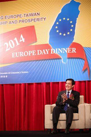 I am very delighted to join tonight's Europe Day Dinner hosted by the European Chamber of Commerce Taiwan (ECCT). It has always been a pleasure to me to do so, and particularly on this day of the 57th anniversary of the European Common Market's establishment, I think I ought to say, "Happy birthday, European Union!" I've attended this event each year since I took office as president. On behalf of the government and people of the Republic of China, I congratulate the EU and its 28 member states on this auspicious occasion, and I certainly hope we'll see more prosperity and cooperation in the future.