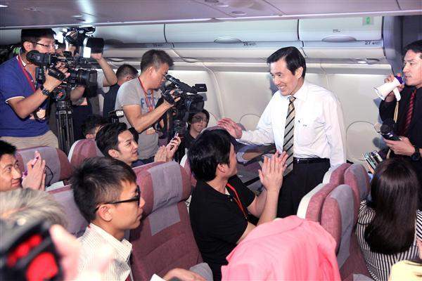President Ma said he was extremely pleased to be able to go overseas again, this time for seven days on a trip slated to cover more than 34,000 kilometers. The president stated that the chartered aircraft would arrive in Honolulu after about a 10-hour flight and be on the ground for 3.5 hours before flying directly to Panama.