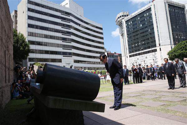 The president emphasized that the wrongs of history perhaps can be forgiven, but that the truths of history cannot be forgotten. The people of the ROC should look back upon history and learn from it, he said, pointing to the activities held on June 6 of this year in France to mark the 70th anniversary of the Normandy invasion by allied forces. President Ma pointed out that German Chancellor Angela Merkel was invited to attend the ceremonies and leaders from a number of countries jointly commemorated this historical event. The president said that after Germany's defeat in World War II, Germany even created the word Vergangenheitsbewaltigung, which means loosely "a struggle to come to terms with the past." He noted that subsequently, Germany and France abandoned mutual hatred that had lasted a century and instead worked together to support the establishment of the European Union (EU), which became the primary force for peace in Europe. Two years ago, he said, the EU was awarded the Nobel Peace Prize, highlighting the union's success in resolving disputes in a peaceful manner, which has helped to create a model for the rest of mankind.