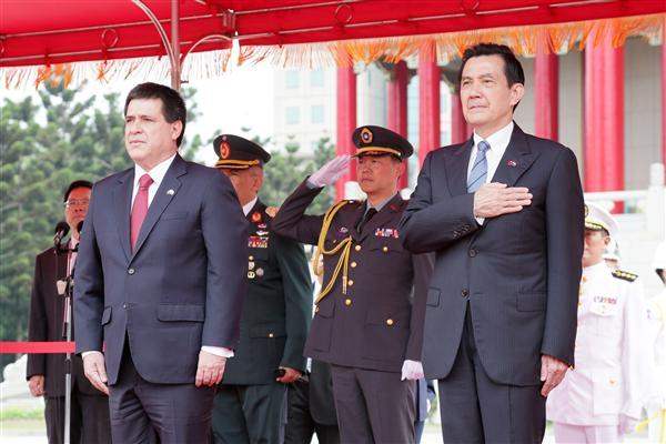 On the morning of October 8, President Ma Ying-jeou welcomed Republic of Paraguay President Horacio Cartes to the ROC in a ceremony featuring full military honors. President Ma called for continued strengthening of bilateral cooperation and a lasting alliance between the two nations.