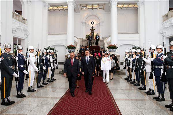 A short time later, President Ma held discussions with President and Mrs. Loeak, during which President Ma said that his counterpart is an outstanding politician and traditional leader. Since President Loeak took office in 2012, the alliance between the two nations has only gotten stronger, he remarked. In addition, President Ma noted, President Loeak sent him a message in July of this year not long after a series of gas explosions rocked Taiwan's large southern city of Kaohsiung, expressing his sympathies and condolences. The president said that he was deeply touched by this gesture.