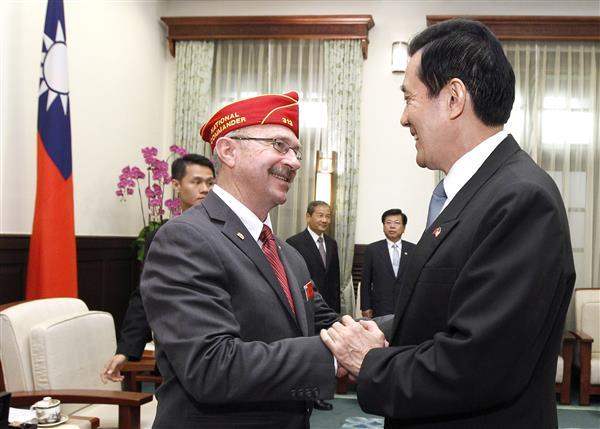 In remarks, President Ma stated that the American Legion has over 2.4 million members throughout the United States and the world—more members than any other organization of retired servicemen in America. The American Legion, he noted, has its 49th Chapter in Taipei, and invites representatives from the ROC's Veterans Affairs Council to attend its national convention each year in August, which is testament to the close friendship between the two sides.