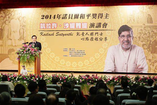 President Ma attends address delivered by 2014 Nobel Peace Prize laureate Kailash Satyarthi