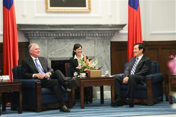 Also in the delegation was President and CEO of the Project 2049 Institute Randall G. Schriver, and the visitors were accompanied to the Presidential Office by American Institute in Taiwan Deputy Director Brent Christensen to meet with President Ma.