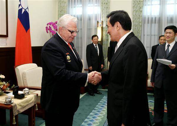 President Ma Ying-jeou met on the afternoon of August 13 with Evgeny Opasov and Andrey Matveev, descendants of former pilots of the Soviet Volunteer Group who participated in air battles for the ROC in the War of Resistance Against Japan. The president also awarded medals commemorating victory in the War of Resistance Against Japan to them in commemoration of the contributions of Soviet volunteer pilots who supported the ROC in the War of Resistance.