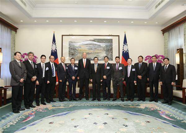 President Ma Ying-jeou met on the afternoon of September 3 with high-ranking executives from the German multinational Siemens. In addition to praising the heroic deeds of German businessman and Siemens employee John Rabe, who helped to protect Chinese lives during World War II, the president also expressed hope that the ROC and Siemens will strengthen cooperation in the areas of smart cities, next generation manufacturing, and the offshore wind energy industry, thereby helping Taiwan to bolster its international competitiveness.