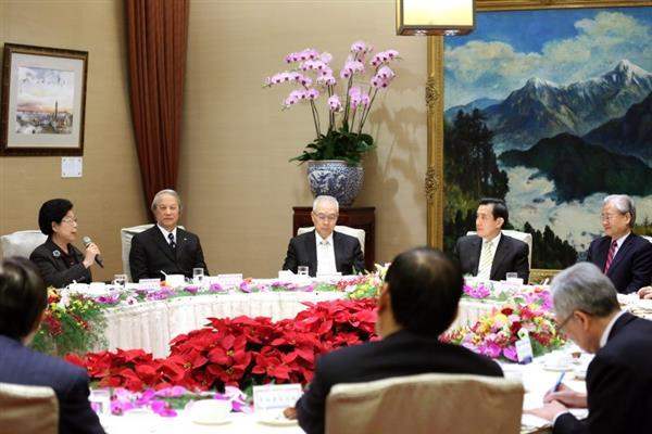 President Ma Ying-jeou and Vice President Wu Den-yih invited the presidents, vice presidents, and secretaries-general from the five Yuan (the five branches of the ROC government) to the Presidential Office on the afternoon of December 17 for a reception. The government leaders exchanged opinions on a wide range of issues including the domestic economy, cross-strait relations, the ROC's external relations, sovereignty in the South China Sea, the ROC's maritime interests, and judicial reform.