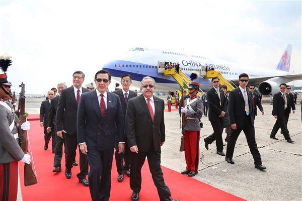 Following a two-hour flight from Houston, Texas, the Forever Peaceful Project delegation led by President Ma Ying-jeou landed at La Aurora International Airport in the capital, Guatemala City, at 1:25 p.m. on March 14 (Monday) local time (3:25 a.m. March 15 Taipei time), the first stop on this visit to two Central American allies.
