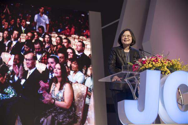 During an appearance on the evening of June 2 at the 2016 JCI Asia-Pacific Conference in Taiwan's southern city of Kaohsiung, President Tsai Ing-wen praised the Junior Chamber International (JCI) for the contributions it has made over the years in enhancing international exchanges and encouraging young people to get involved in public affairs.