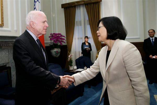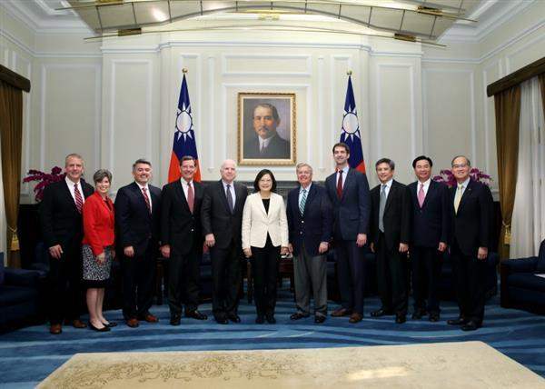 President Tsai Ing-wen met on the afternoon of June 5 with a delegation led by US Senate Armed Services Committee Chairman John McCain, and expressed hope that the members of the delegation will continue to be staunch supporters of Taiwan, and that Taiwan-US relations will continue to deepen in the future and move to the next level.