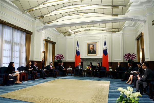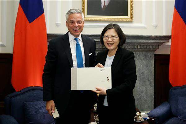 President Tsai mentioned that Ambassador Huntsman basically qualifies as "half Asian" because he served a stint as a missionary in Taiwan, returned to work here for a time, and later in his career was stationed in Beijing. He is closely familiar with Taiwan's people and culture, and has a deep understanding of cross-strait affairs. The president noted that the other members of the delegation have all been to Taiwan before, and have spent years focusing on Asia-Pacific security, economic, and trade issues. The president voiced hope that her visitors can provide valuable recommendations during this trip in order to enhance bilateral cooperation.