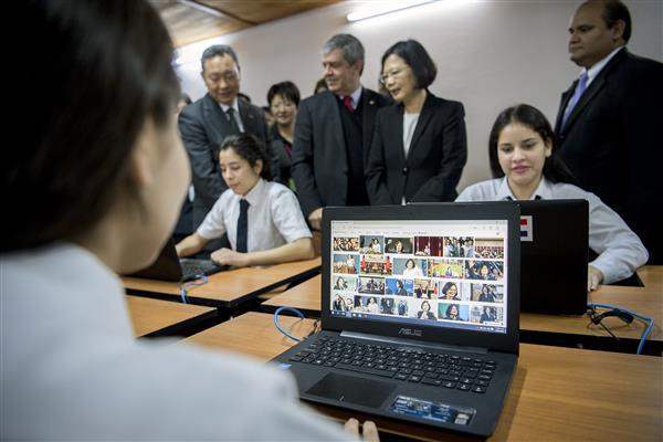 At 11:00 a.m. on June 29 Paraguay time (11:00 p.m. Taipei time), President Tsai Ing-wen attended a ceremony at the General Andrés Rodriguez School for the donation of computers by Taiwan's ASUS Foundation.