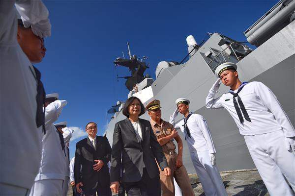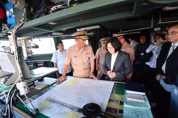 On the morning of July 13, President Tsai Ing-wen went to the Zuoying Naval Base in Kaohsiung to conduct an inspection tour at the Naval Fleet Command, where she thanked naval officers and enlisted personnel for their hard work. While there she boarded the Di Hua Frigate, which was soon to depart to patrol the South China Sea, and delivered an address to the officers and enlisted personnel aboard ship.