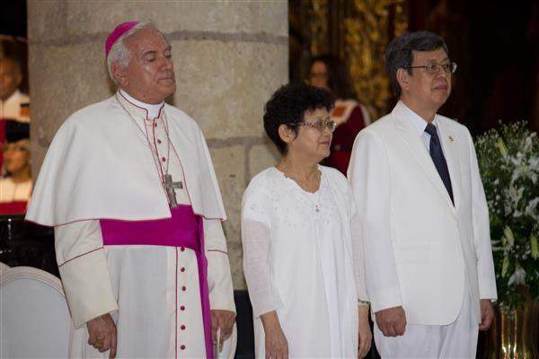 Then Vice President Chen—accompanied by National Security Council Deputy Secretary-General Tseng Hou-jen (曾厚仁), Deputy Minister of Foreign Affairs Javier Ching-shan Hou (侯清山), and Republic of China Ambassador to the Dominican Republic Valentino Tang (湯繼仁) and Mrs. Tang—proceeded to the Cathedral of Santa Maria la Menor to attend a mass to celebrate the inauguration of the president and vice president. Vice President Chen was seated in the first row reserved for heads of state. During the solemn ceremony, Archbishop Luigi Bianco offered a prayer for the well-being of Taiwan and Vice President Chen.