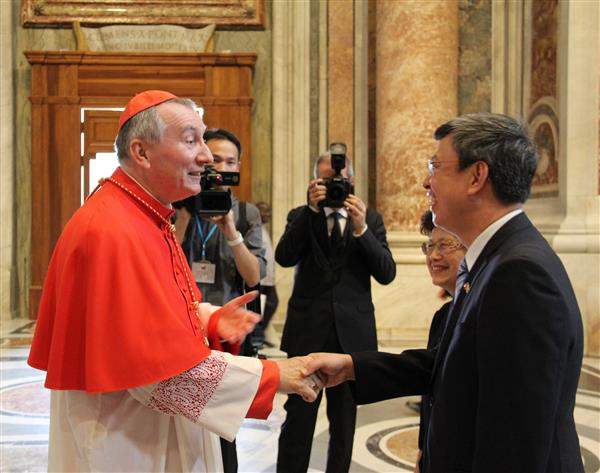 Vice President and Mrs. Chen were then escorted by a protocol officer to receive holy communion from a co-celebrant at the mass. After the conclusion of the mass, Monsignor Jose Avelino Bettencourt, Head of the Protocol Office at the Vatican State Secretariat, accompanied them to shake hands and exchange pleasantries with Vatican Secretary of State Cardinal Pietro Parolin.