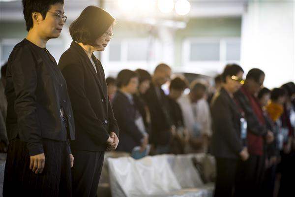 President Tsai first joined those in attendance in observing a moment of silence for all victims of political oppression, then listened to two songs—Rest in Peace and A Big River—performed by a choir organized by the Mutual Assistance Association for Former Political Prisoners in the Taiwan Area. Afterwards, President Tsai conferred "certificates of restored reputation" to the victims of political repression as well as their family members, and handed letters of thanks to four persons who had donated items that are of historical significance.