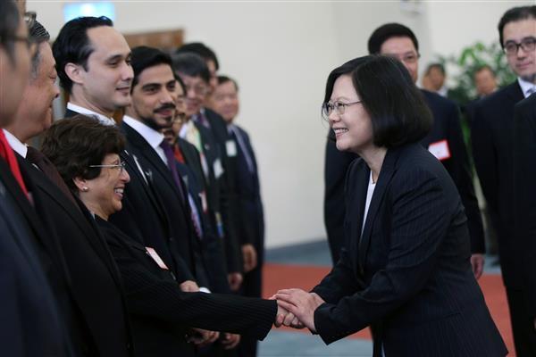 Among those at the airport to see President Tsai and the delegation off were Acting Secretary-General to the President Liu Chien-sin (劉建忻), National Security Council Deputy Secretary-General Chen Chun-lin (陳俊麟), Deputy Minister of Foreign Affairs Wu Chih-chung (吳志中), Overseas Community Affairs Council Vice Minister Roy Yuan-Rong Leu (呂元榮), and the ambassadors and representatives of the four Central American diplomatic allies that the president is scheduled to visit.