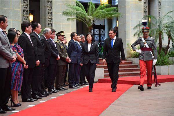 During the welcoming ceremony, President Tsai said she felt honored to come to Guatemala, and especially to be welcomed with military honors at the National Palace of Culture, a historical building redolent with elegance and culture. On behalf of the government of the Republic of China, President Tsai extended the sincere greetings of the people of Taiwan to the government and people of Guatemala.