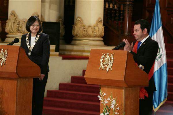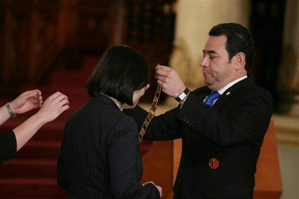 President Tsai emphasized that Taiwan would be willing to continue promoting related cooperation projects, and hopes to enhance bilateral exchanges in such areas as agricultural technology, infrastructure, culture, and especially tourism. The idea is to make diplomatic ties between Taiwan and Guatemala a model of "steadfast diplomacy and mutual assistance for mutual benefits."
