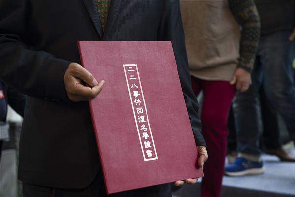 In a short while, acting on behalf of the government, I will be awarding "certificates of restored reputation" to the family members of several victims of the 228 Incident. Two of these individuals had originally been classified as "possible victims," but after historical archives were made available for public access it was confirmed that they had indeed been victims. Our experience in this case showed us that there remain more historical truths for the government to help bring to light.
