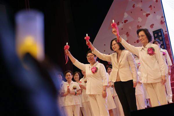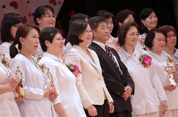 While attending an event to celebrate International Nurses Day 2017 on the afternoon of May 12, President Tsai Ing-wen praised nurses for their contributions to the health of people in Taiwan, and stressed that the government has an unshirkable responsibility to increase the benefits available to nurses and improve staff scheduling to achieve more reasonable nurse-to-patient ratios and create friendlier workplaces.