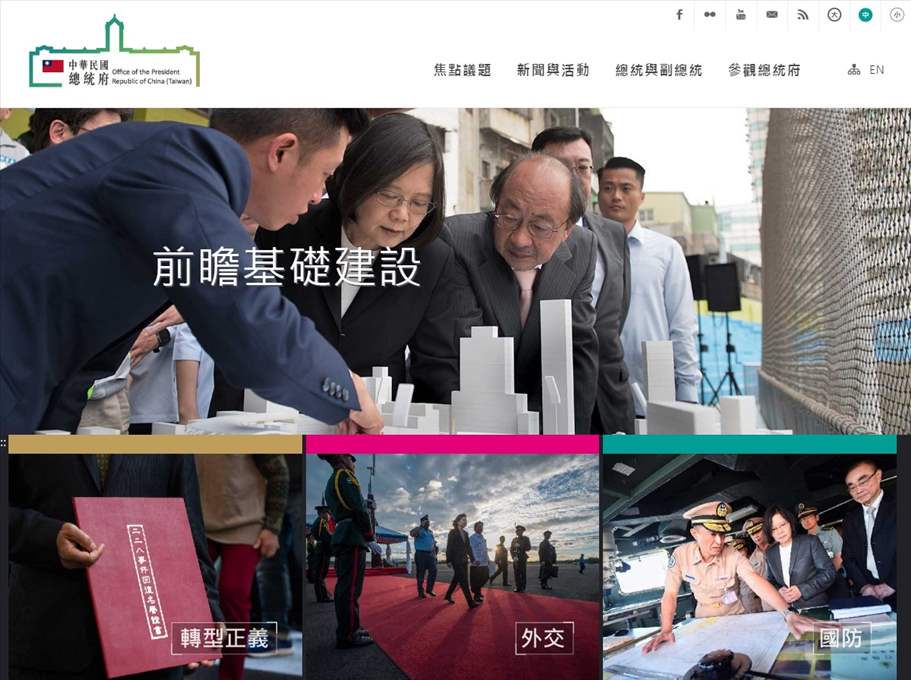 Spokesperson Chang stated that the existing Presidential Office website was developed in 2009, and used technologies that have become outdated, so in order to stay more closely in sync with the trend toward mobile, the new website will feature a more intuitive and user-friendly interface to provide user-driven services, with the hope that this will bring visitors a more convenient, speedy, and comfortable website browsing experience.