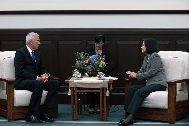 In remarks, President Tsai first extended a warm welcome and thanked Admiral Samuel Locklear for supporting enhancement of Taiwan-US military exchanges during his tenure as commander of the United States Pacific Command. She also thanked the NBR for its long-standing staunch support for Taiwan.