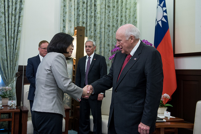 Noting that Mr. Cheney would be giving the keynote speech at the 2017 Asia-Pacific Security Dialogue the following day, the president said she's looking forward to that presentation with great anticipation, and welcomed Mr. Cheney to visit Taiwan often.