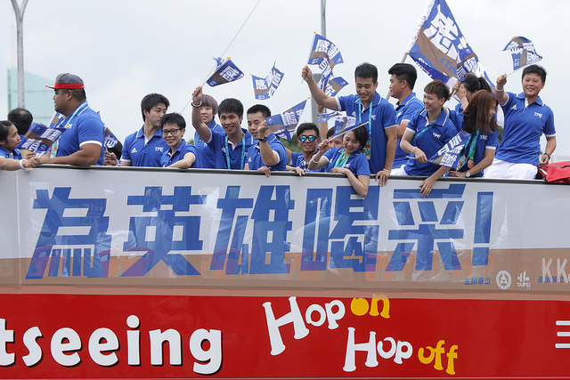 After the end of the competition, the Ministry of Education's Sports Administration and the Taipei City government jointly held a special Taiwan's Heroes Parade so citizens could come out and share the athletes' glory and joy. The parade started off at the Presidential Office Building, so President Tsai posed for a commemorative group photo with the athletes, and walked with them to the entrance porch at the main entrance to the Presidential Office Building, the parade’s starting point. There, together with the welcoming crowds who lined the street in front of the building, she cheered the athletes, a moment of great pride for all the people of Taiwan.