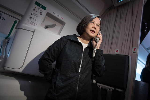 President Tsai Ing-wen departed on October 28 (Saturday) at 8:30 a.m. Taipei time on a trip with the theme "Sustainable Austronesia, Working Together for a Better Future—2017 State Visits to Pacific Allies." In remarks delivered over the aircraft's public address system, the president thanked colleagues at the Office of the President, the Ministry of Foreign Affairs, and other related government agencies for their trip planning and preparations, and called on everyone in her delegation to work together to advance Taiwan's diplomatic efforts.