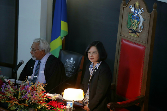 Upon arriving at the National Parliament, President Tsai first met with Speaker Ajilon Nasiu. Following the meeting, Speaker Nasiu accompanied the president to the parliament chamber to deliver her address.