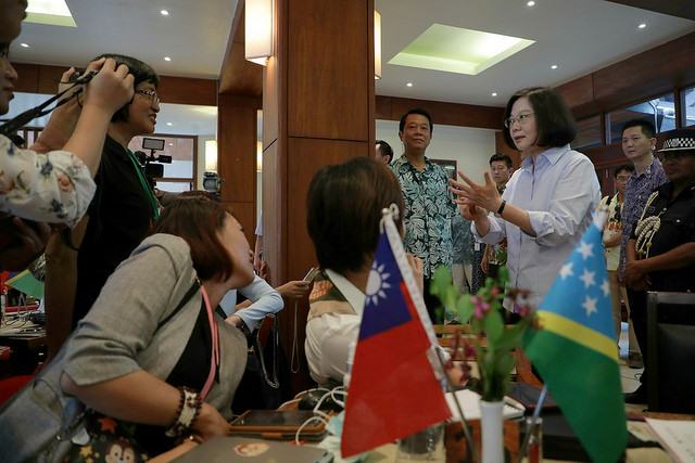 President Tsai stated that during this visit to Taiwan's diplomatic allies in the Pacific, she has met with President Hilda C. Heine of the Marshall Islands, Prime Minister Enele Sosene Sopoaga of Tuvalu, and Prime Minister Manasseh Sogavare of the Solomon Islands. In addition to signing several memorandums of understanding (MOUs), they also conducted dialogue and discussions on bilateral cooperation.