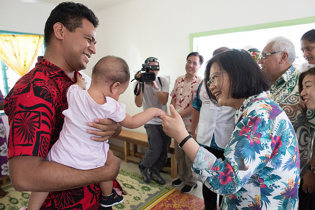 Afterward, President Tsai and her delegation proceeded to Princess Margaret Hospital, where she first received a briefing on Taiwan-Tuvalu bilateral healthcare cooperation programs from Dr. Tsai Ming-che (蔡明哲), Dean of the College of Medicine at Taiwan's Chung Shan Medical University. The president then visited a maternal and child caring center to learn how assistance from Taiwan has been used to support a renovation project and fund the purchase of equipment needed for the care of newborn and premature infants. President Tsai also interacted amiably with three premature infants who had been nursed to health under the care of Taiwanese and Tuvalu healthcare professionals.