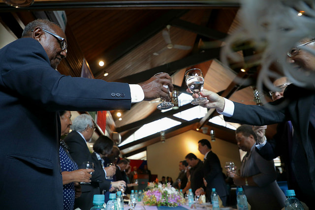 In closing, President Tsai once again thanked Governor-General Kabui for his invitation and warm hospitality. She then asked everyone to join her in a toast to the lasting friendship between Taiwan and the Solomon Islands.