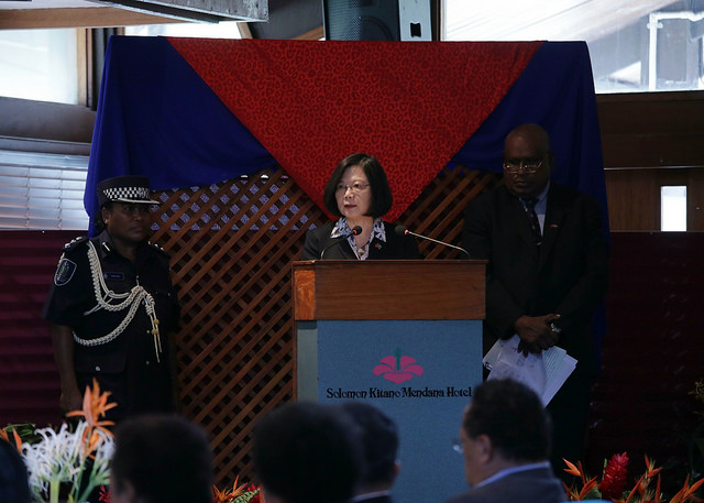 The president said that earlier in the day, Taiwan and the Solomon Islands signed a memorandum of understanding on police cooperation, and discussed a solar energy development project with Solomon Islands National University. These advances demonstrate the tremendous diversity of cooperation and exchanges between the two countries. In her earlier speech at the National Parliament of Solomon Islands, the president mentioned that experts from Taumako Island helped our Amis people in eastern Taiwan revive their lost art of making "fayan" sailboats, so these traditional vessels can once more sail the Pacific Ocean. Our Minister Icyang Parod (夷將‧拔路兒) of the Council of Indigenous Peoples and Legislator Kolas Yotaka (谷辣斯‧尤達卡) are both Amis, and were deeply impressed by the project, President Tsai said.