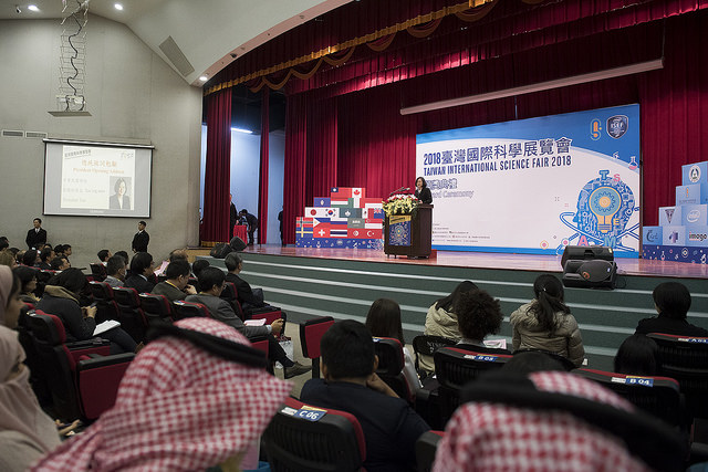 The president then stated that adults need to do more to ensure that students interested in scientific research receive the support they need to boldly pursue their dreams. This is our generation's responsibility, she said. She also thanked the 2018 TISF judges, staff, and corporate sponsors for their efforts, and expressed admiration for the enthusiasm that Academia Sinica Academician Lin Jung-Yaw (林榮耀) has devoted to science fairs over the years.