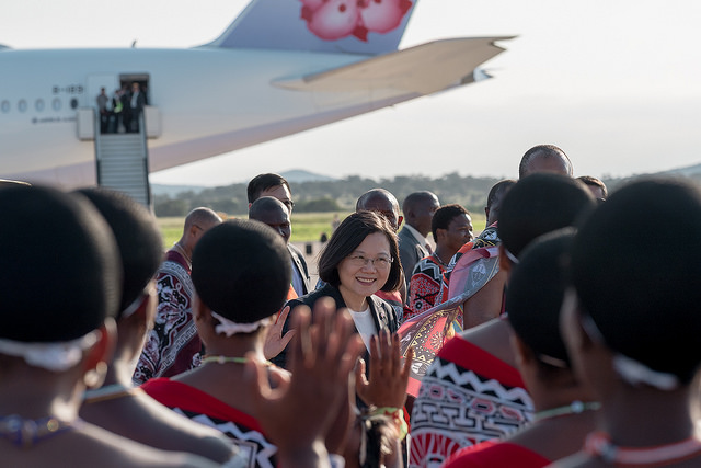 After a 13-hour flight, President Tsai Ing-wen arrived at Swaziland's King Mswati III International Airport at 3:30 p.m. local time (9:30 p.m. Taipei time) on Tuesday, April 17.