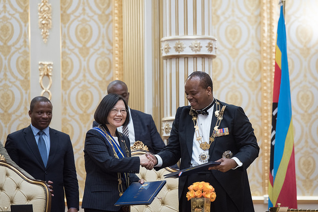 President Tsai Ing-wen, on a state visit codenamed "Taiwan and Swaziland: Enduring Partners," met King Mswati III of Swaziland at the royal palace on the evening of Tuesday, April 17 local time (early morning April 18 Taipei time).