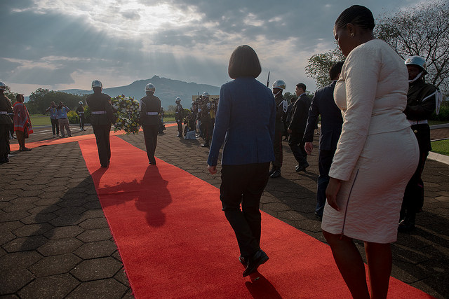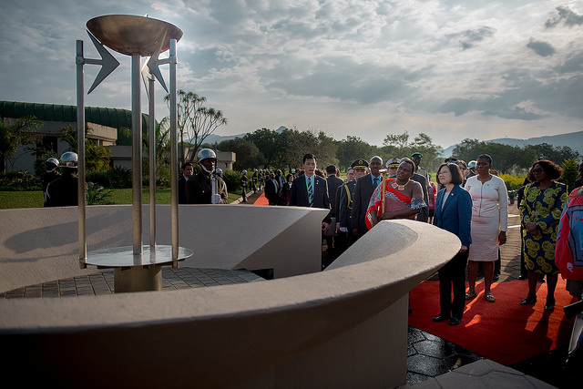 President Tsai Ing-wen proceeded to King Sobhuza II Memorial Park in Swaziland on the afternoon of Wednesday, April 18 local time (the evening of April 18 Taipei time) to lay a wreath at the late king's mausoleum. The president also penned the phrase "Taiwan and Swaziland: Enduring Partners" as a sign of respect.