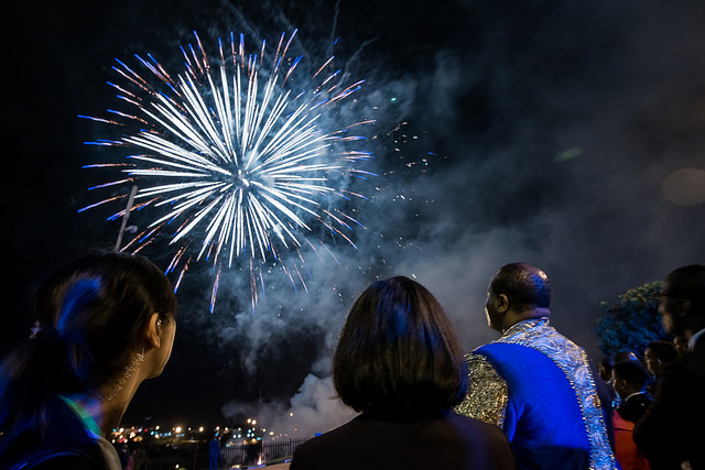The president then took in a fireworks display in front of the banquet hall together with the king, and made a happy birthday wish for the king and his country.