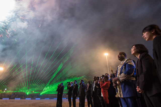 On the evening of April 19 local time (early morning, April 20, Taipei time), President Tsai Ing-wen attended a birthday banquet for Swaziland's King Mswati III at the Mavuso Trade Centre and enjoyed a fireworks display.