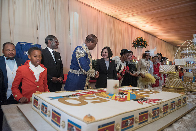 After a pastor started the banquet by wishing the king a long life, everyone enjoyed some singing and dance performances. The atmosphere was delightfully festive as Deputy Prime Minister (and Acting Prime Minister) Paul Dlamini then invited the guests to raise a toast to the king. After all in attendance sang Happy Birthday, the king invited President Tsai to join him in cutting the birthday cake.