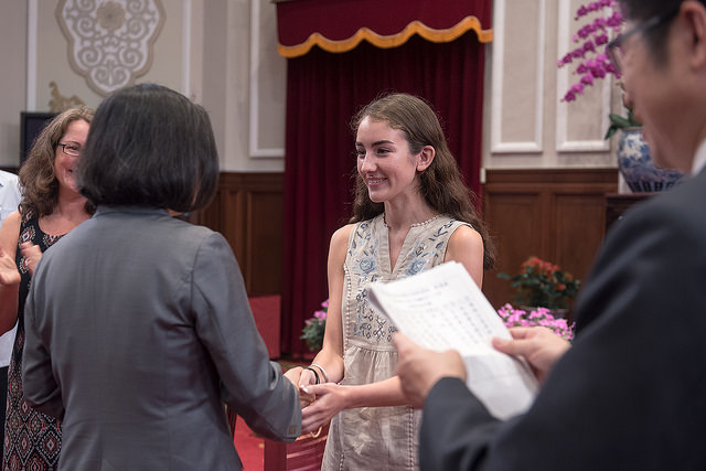 In her remarks, President Tsai first extended a warm welcome to Katherine and her family. The president stated that before they came to the Presidential Office, she took some time to look over their wonderful family story again. She noted that over ten years ago, a little girl, just five years old, was inspired by a public television documentary, and decided to raise funds for mosquito nets to protect millions of children in Africa from malaria. This is a story about extraordinary compassion, courage, and the power of action, said the president.