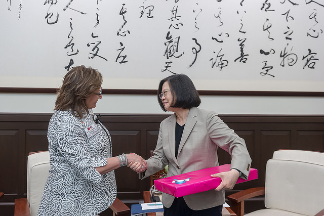 Taiwan-US relations have warmed over the past two years, the president noted, and Taiwan has interacted with US state governments more often. She was delighted, she said, to meet and talk with Governor Martinez in Taiwan.