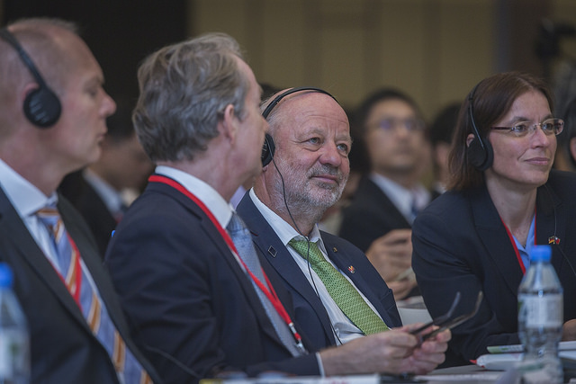 Also attending the event were President of Business Today Liang Yung-Huang (梁永煌); EWG President Fell; Director of ECN Program Development Jeeninga; Sabrina Schmidt-Koschella, Deputy Director General of German Institute Taipei; Guy Wittich, Representative of the Netherlands Trade and Investment Office; Yuni Wang (王雲怡), Chairperson of the wpd Taiwan Energy Co. Ltd; Sam Hong (洪傳獻), President of the Neo Solar Power Corp.; Eric Chiang (江義福), Chairman of the Chung-Hsin Electric & Machinery Mfg. Corp.; and Wu Tang-Chieh(吳當傑), Chairman of the Hua Nan Commercial Bank Co., Ltd.