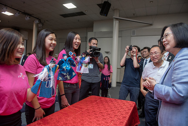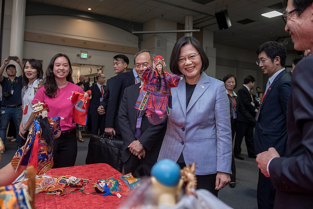 Later that afternoon, President Tsai visited the Culture Center of the Taipei Economic and Cultural Office in Los Angeles. In addition to familiarizing herself with the center and learning how its facilities are used by Taiwanese-American youth, the president also met with young students who are learning about Taiwanese glove puppetry culture, and tried her hand at operating a puppet.