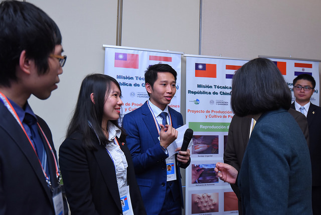 President Tsai said that everyone in the technical mission plays an important role in Taiwan's diplomatic efforts, with many serving more than one of our diplomatic allies. She cited Mr. Luis Jou, head of the current technical mission, as an example. Mr. Jou previously helped set up a production and marketing system for Honduran fishermen, but is now in Paraguay, continuing his work with our diplomatic allies.