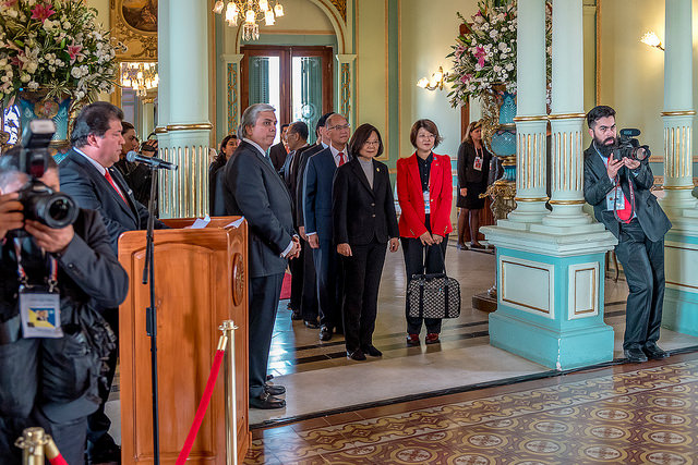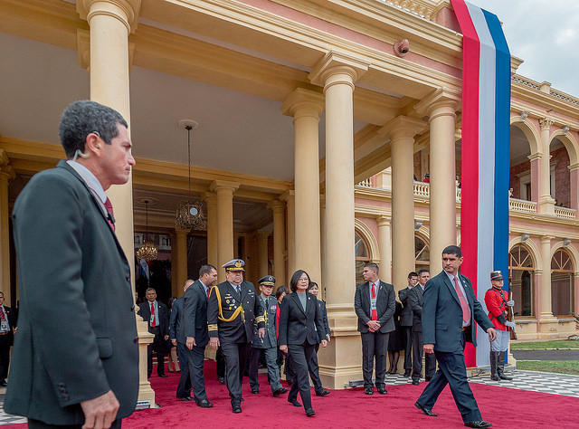 After the prayer session, the heads and representatives of state returned to the Paraguayan presidential palace, where a master of ceremonies read out their names as they personally delivered congratulations to President and First Lady Abdo, including President Tsai.