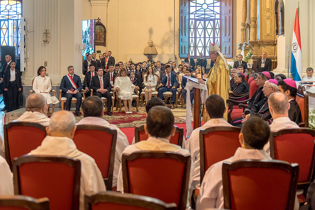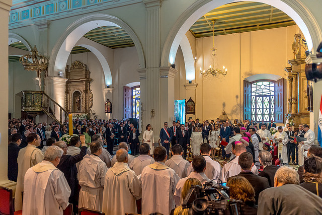 Following the inaugural ceremony, President Tsai and the other heads and representatives of state proceeded to the Asunción Cathedral to take part in a religious ceremony to pray for blessings. After remarks by Archbishop of Asunción Edmundo Valenzuela Mellid, a hymn was played, and a prayer for Paraguay was offered in a solemn ceremony. President Abdo then exchanged greetings with each of the assembled heads and representatives of state.