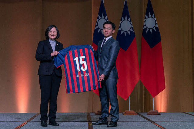 Commenting on the young Taiwanese soccer player Lin Yu Wei (林育葦), who is pursuing a career in Paraguay, President Tsai noted that the attendees might have noticed a building designed to look like a soccer ball on their way to the banquet. This shows just how passionate the people of Paraguay are about soccer. With that same passion, Mr. Lin came to Paraguay by himself to chase his "soccer dream," she said, and there must have been many difficulties along the way that only he knows about. But Paraguayans are warm and friendly, and his coach and teammates treat him like family, caring for him and helping him train. Mr. Lin thus personifies the friendship between Taiwan and Paraguay. The president said she looks forward to the day when Mr. Lin performs on a much bigger stage, perhaps even the next World Cup.